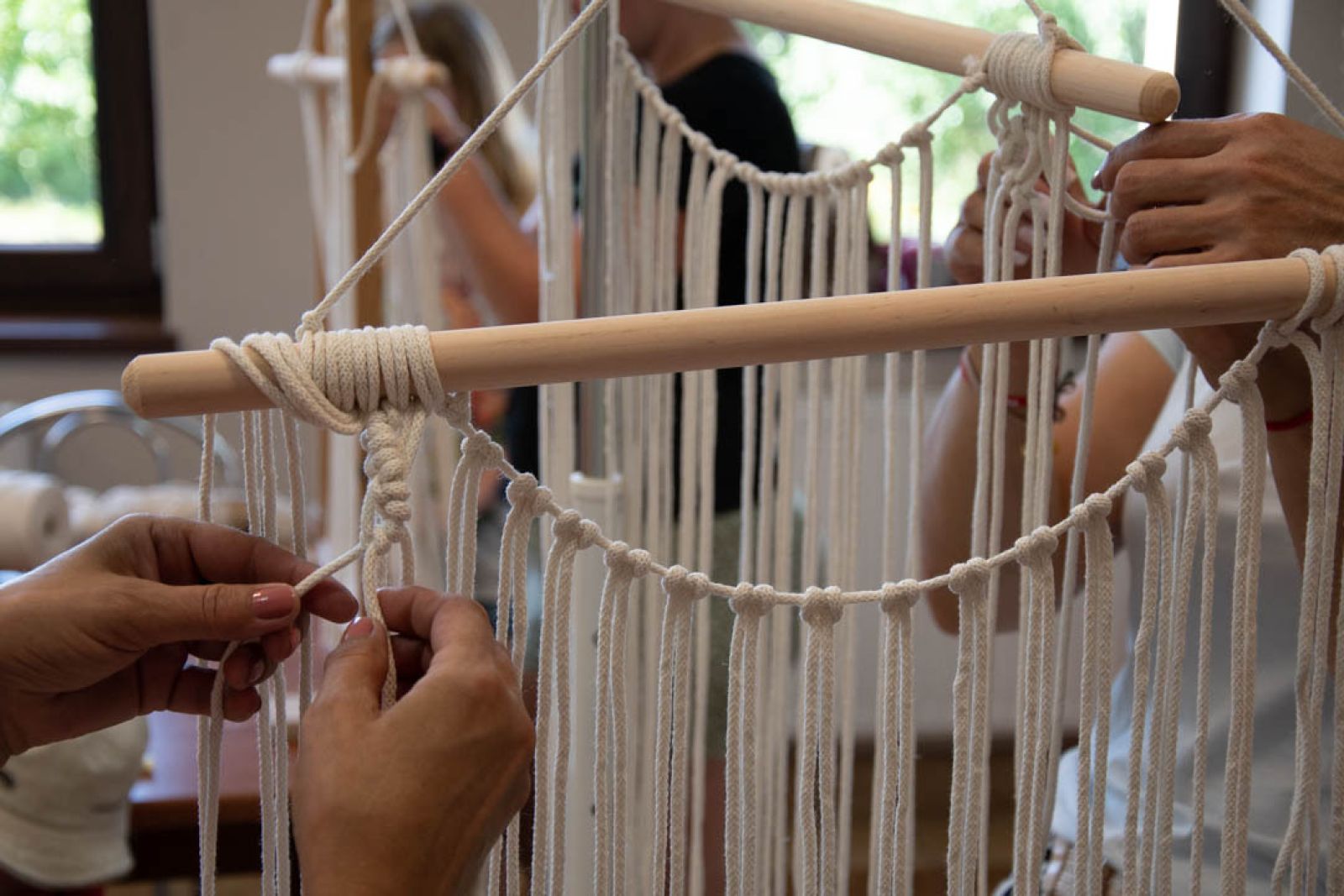 • Uczestniczki warsztatów makramy w trakcie zajęć
