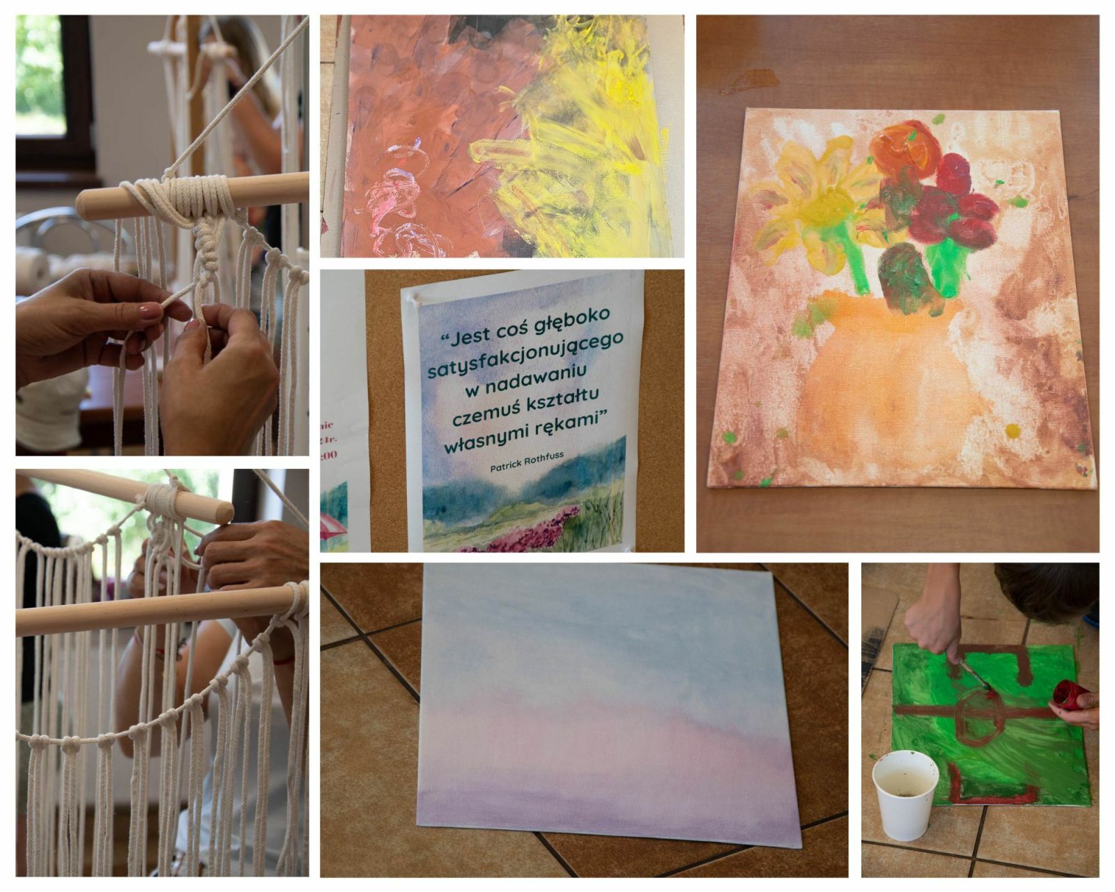 • Kolaż dzieł z makramy i dzieł plastycznych