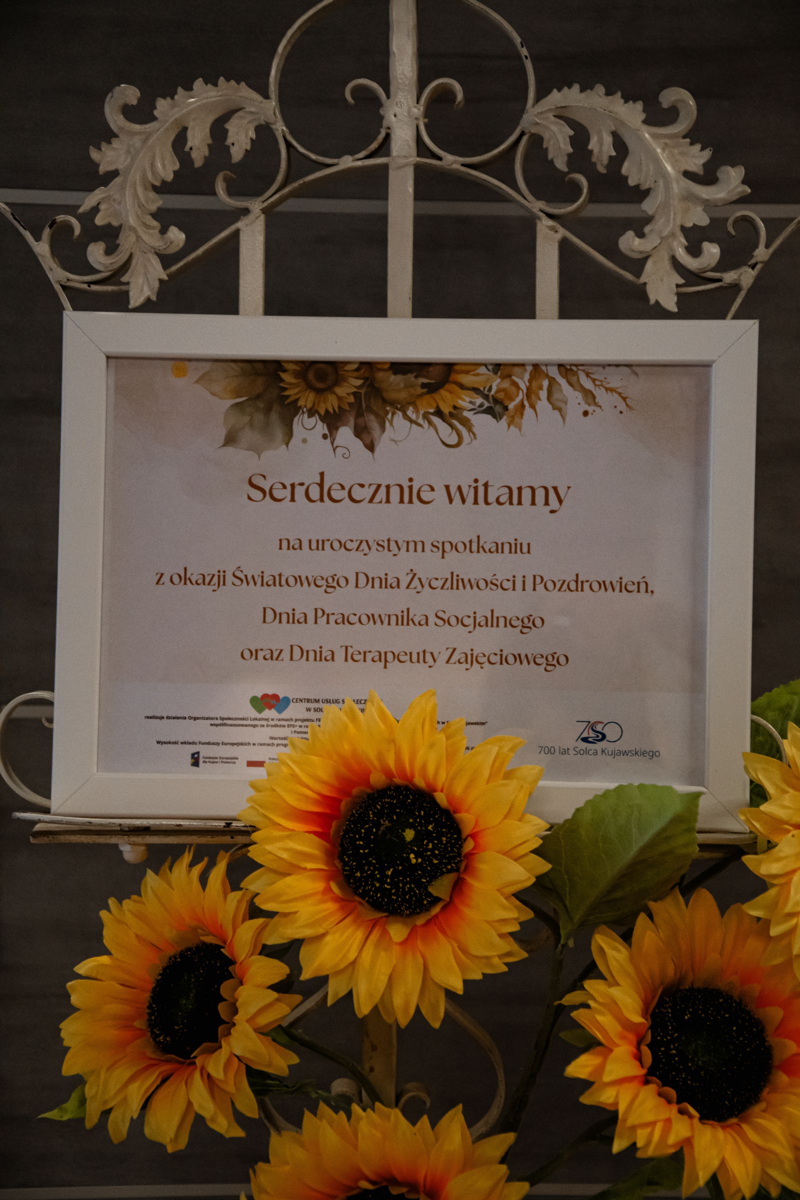 20 listopada 2025r. w Soleckim Centrum Kultury w Solcu Kujawskim, w ramach realizacji projektu „Centrum Usług Społecznych w Solcu Kujawskim” współfinansowanego ze środków Programu Fundusze Europejskie dla Kujaw i Pomorza na lata 2021 – 2027, odbyło się uroczyste spotkanie z okazji Światowego Dnia Życzliwości i Pozdrowień, Dnia Pracownika Socjalnego oraz Dnia Terapeuty Zajęciowego. Było to wydarzenie skierowane do przedstawicieli instytucji, organizacji pozarządowych oraz stowarzyszeń działających w obszarze pomocy społecznej i wsparcia osób potrzebujących.